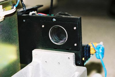 Output window. This window is a simple quartz output with reflection of around 4% only. Having a high-quality reflector (which would reflect more light back into the tube) would actually decrease the power output and kill lasing altogether - this due to the very short time the atoms are in the excited state and also due to the large amount of photonic emission. |